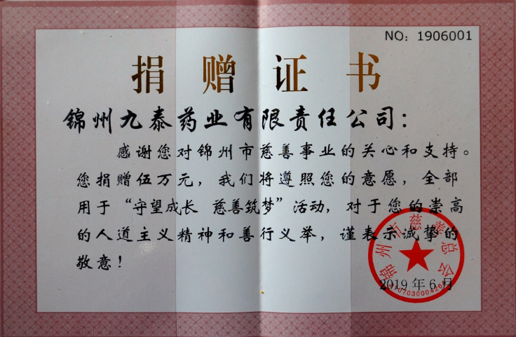 錦州市慈善總會授予公司“守望成長,慈善筑夢”活動優(yōu)秀慈善贊助單位。