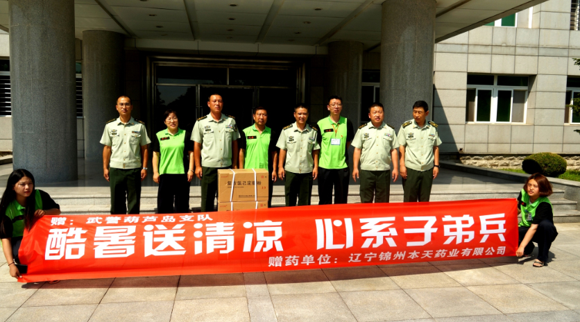 31日公司黨委王書記,本天藥業(yè)質(zhì)量主管裴經(jīng)理與公司營銷中心人員,一起到錦州市武警總隊(duì)和葫蘆島市武警總隊(duì)進(jìn)行了擁軍慰問,并向廣大官兵贈送了價值數(shù)萬元的防暑降溫藥品,受到了廣大武警官兵的熱烈歡迎。